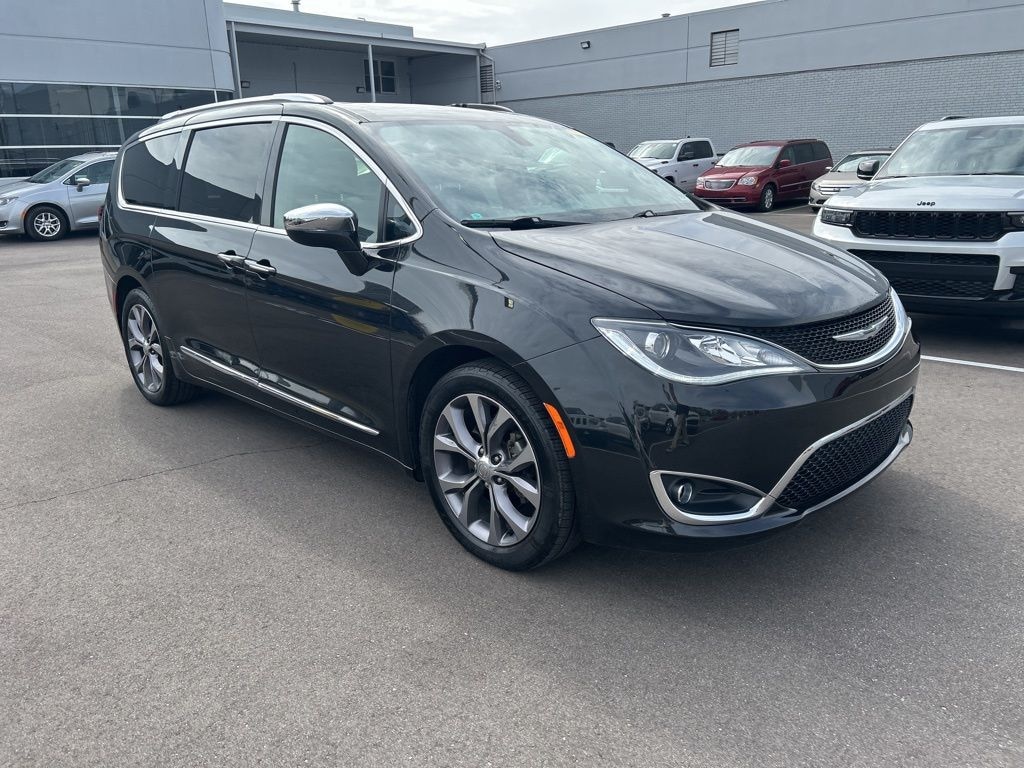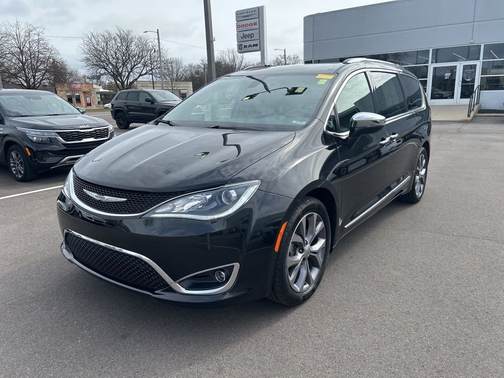 The all new Golling CDJR of Grosse Pointe is pumped up to offer this 2019 Chrysler Pacifica Limited in Brilliant Black Crystal Pearlcoat with Black/Black/Black Leather. This Pacifica is very well equipped with Quick Order Package 27D 35th Anniversary (35th Anniversary Floor Mats w/Logo, 35th Anniversary Liftgate Badge, Black Seats, and Cranberry Wine Accents), Tire & Wheel Group (20" x 7.5" Aluminum Wheels and Falken Brand Tires), 13 Speakers, 3.25 Axle Ratio, 3rd row seats: split-bench, 4-Wheel Disc Brakes, ABS brakes, Air Conditioning, Alloy wheels, AM/FM radio: SiriusXM, Apple CarPlay/Android Auto, Audio memory, Auto-dimming door mirrors, Auto-dimming Rear-View mirror, Automatic temperature control, Bodyside moldings, Brake assist, Bumpers: body-color, Compass, Delay-off headlights, Driver door bin, Driver vanity mirror, Driver's Seat Mounted Armrest, Dual front impact airbags, Dual front side impact airbags, Electronic Stability Control, Emergency communication system: SiriusXM Guardian, Four wheel independent suspension, Front anti-roll bar, Front Bucket Seats, Front dual zone A/C, Front fog lights, Front reading lights, Fully automatic headlights, Garage door transmitter, Heated door mirrors, Heated front seats, Heated rear seats, Heated steering wheel, High-Intensity Discharge Headlights, Illuminated entry, Knee airbag, Leather steering wheel, Low tire pressure warning, Manufacturer's Statement of Origin, Memory seat, Navigation System, Occupant sensing airbag, Outside temperature display, Overhead airbag, Overhead console, Panic alarm, ParkView Rear Back-Up Camera, Passenger door bin, Passenger seat mounted armrest, Passenger vanity mirror, Power door mirrors, Power driver seat, Power Liftgate, Power moonroof, Power passenger seat, Power steering, Power windows, Premium Leather Trim Bucket Seats, Radio data system, Radio: Uconnect 4C Nav w/8.4" Display, Rain sensing wipers, Rear air conditioning, Rear reading lights, Rear window defroster, Rear window wiper, Reclining 3rd row seat, Remote keyless entry, Roof rack, Security system, Speed control, Split folding rear seat, Spoiler, Steering wheel mounted audio controls, Tachometer, Telescoping steering wheel, Tilt steering wheel, Touring Suspension, Traction control, Trip computer, Turn signal indicator mirrors, Variably intermittent wipers, Ventilated front seats, Voltmeter, and Wheels: 18" x 7.5" Aluminum Polished.