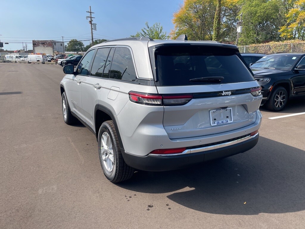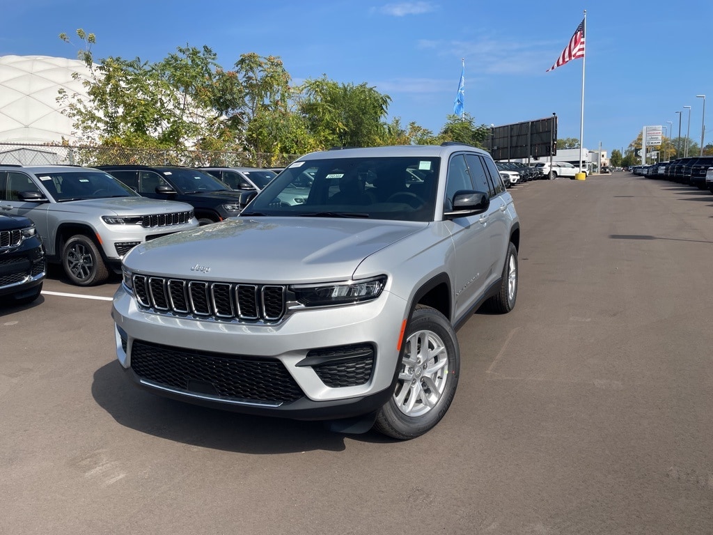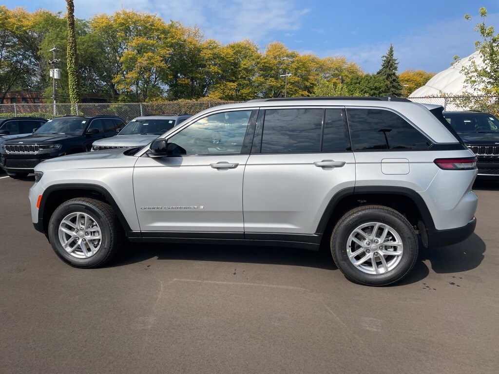 The all new Golling CDJR of Grosse Pointe is pumped up to offer this 2025 Jeep Grand Cherokee Laredo in Silver Zynith with Global Black Cloth. This Grand Cherokee is very well equipped with Luxury Tech Group I (115V Auxiliary Power Outlet, Heated Front Seats, Heated Steering Wheel, Power Liftgate, Rain Sensitive Windshield Wipers, Remote Start System, Satellite Radio, Secondary Active Grille Shutters, Selectable Tire Fill Alert, and Wireless Charging Pad), Heated door mirrors, Remote keyless entry, Security system, Wheels: 17" x 6.5" Fully Painted Aluminum, 4-Wheel Disc Brakes, 6 Speakers, ABS brakes, Air Conditioning, Alloy wheels, AM/FM radio: SiriusXM, Anti-whiplash front head restraints, Automatic temperature control, Brake assist, Bumpers: body-color, Cloth Seats, Compass, Delay-off headlights, Driver door bin, Driver vanity mirror, Dual front impact airbags, Dual front side impact airbags, Electronic Stability Control, Emergency communication system, Four wheel independent suspension, Front anti-roll bar, Front Bucket Seats, Front Center Armrest w/Storage, Front dual zone A/C, Front reading lights, Fully automatic headlights, Illuminated entry, Knee airbag, Low tire pressure warning, Model Year Tracking, Normal Duty Suspension, Occupant sensing airbag, Outside temperature display, Overhead airbag, Overhead console, Panic alarm, ParkView Rear Back-Up Camera, Passenger door bin, Passenger vanity mirror, Power door mirrors, Power driver seat, Power steering, Power windows, Radio data system, Radio: Uconnect 5 w/8.4" Display, Rear anti-roll bar, Rear reading lights, Rear window defroster, Rear window wiper, Speed control, Speed-Sensitive Wipers, Split folding rear seat, Spoiler, Steering wheel mounted audio controls, Tachometer, Telescoping steering wheel, Tilt steering wheel, Traction control, Trip computer, Variably intermittent wipers, and Voltmeter. 19/26 City/Highway MPG