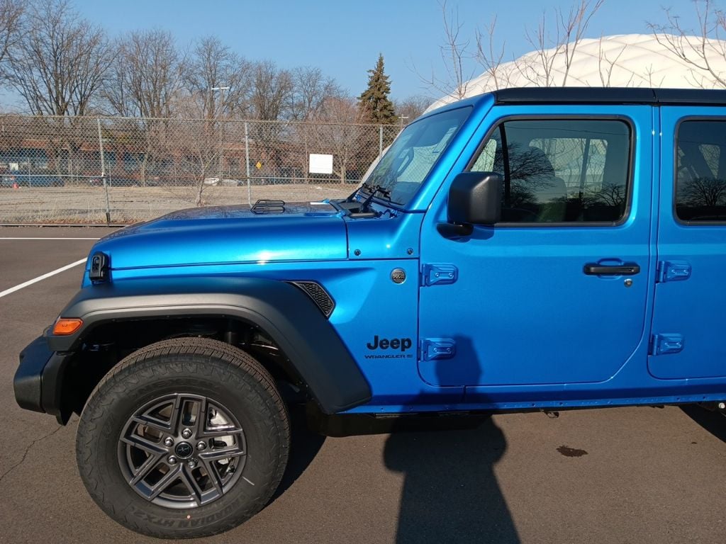The all new Golling CDJR of Grosse Pointe is proud to offer this 2026 Jeep Wrangler Sport S in Hydro Blue Pearl Coat with Black Cloth. This Wrangler is very well equipped with Convenience Group (2-Door Passive Entry, Front Door Locks, Air Conditioning with Auto Temp Control, Air Filtering, Cluster 7.0" TFT Color Display, Emergency/Assistance Call, Heated Front Seats, Heated Steering Wheel, and Universal Garage Door Opener), LED Headlamp and Fog Lamp Group (Front LED Fog Lamps and LED Premium Reflector Headlamps), Quick Order Package 24S Sport S (Advanced Brake Assist, Automatic Headlamps, Corning Gorilla Glass, Deep Tint Sunscreen Windows, Enhanced Adaptive Cruise Control, Full Speed Forward Collision Warning Plus, Power Heated Mirrors, Premium Wrapped Steering Wheel, Security Alarm, Sun Visors with Illuminated Vanity Mirrors, and Wheels: 17" x 7.5" Gray), 12.3" Touchscreen Display, 3.45 Overall Top Gear Ratio, 4-Wheel Disc Brakes, 4G LTE Wi-Fi Hot Spot, 8 Speakers, ABS brakes, Air Conditioning, AM/FM radio: SiriusXM with 360L, Apple CarPlay, Apple CarPlay/Android Auto, Aux Battery, Black 3-Piece Hard Top, Brake assist, Compass, Connectivity - US/Canada, Delay-off headlights, Driver door bin, Driver vanity mirror, Dual front impact airbags, Dual front side impact airbags, Electronic Stability Control, For More Info, Call 800-643-2112, Freedom Panel Storage Bag, Front anti-roll bar, Front Bucket Seats, Front Center Armrest w/Storage, Front fog lights, Front reading lights, Google Android Auto, Illuminated entry, Integrated Center Stack Radio, Integrated roll-over protection, Low tire pressure warning, Manufacture Statement of Origin, Myflexcare Service Plan, No Soft Top, Non-Lock Fuel Cap Without Discriminator, Normal Duty Suspension, Occupant sensing airbag, Outside temperature display, Overhead airbag, Panic alarm, ParkView Rear Back-Up Camera, Passenger door bin, Passenger vanity mirror, Power steering, Power windows, Radio data system, Radio: Uconnect 5 with 12.3" Display, Rear anti-roll bar, Rear reading lights, Rear Window Defroster, Rear Window Wiper/Washer, Remote keyless entry, SiriusXM Radio Service, SiriusXM with 360L, Speed control, Split folding rear seat, Steering wheel mounted audio controls, Stop-Start Dual Battery System, Tachometer, Telescoping steering wheel, Tilt steering wheel, Traction control, Trip computer, Variably intermittent wipers, and Wheels: 17" x 7.5" Black Steel Styled.
