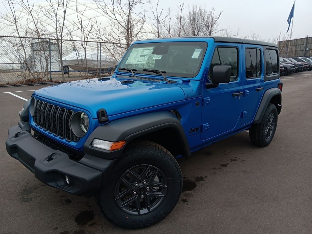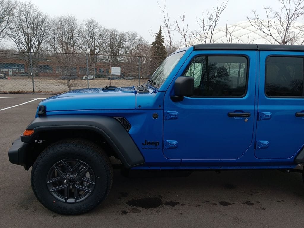 The all new Golling CDJR of Grosse Pointe is proud to offer this 2026 Jeep Wrangler Sport S in Hydro Blue Pearl Coat with Black Cloth. This Wrangler is very well equipped with Convenience Group (2-Door Passive Entry, Front Door Locks, Air Conditioning with Auto Temp Control, Air Filtering, Cluster 7.0" TFT Color Display, Emergency/Assistance Call, Heated Front Seats, Heated Steering Wheel, and Universal Garage Door Opener), LED Headlamp and Fog Lamp Group (Front LED Fog Lamps and LED Premium Reflector Headlamps), Quick Order Package 24S Sport S (Advanced Brake Assist, Automatic Headlamps, Corning Gorilla Glass, Deep Tint Sunscreen Windows, Enhanced Adaptive Cruise Control, Full Speed Forward Collision Warning Plus, Power Heated Mirrors, Premium Wrapped Steering Wheel, Security Alarm, Sun Visors with Illuminated Vanity Mirrors, and Wheels: 17" x 7.5" Gray), 12.3" Touchscreen Display, 3.45 Overall Top Gear Ratio, 4-Wheel Disc Brakes, 4G LTE Wi-Fi Hot Spot, 8 Speakers, ABS brakes, Air Conditioning, AM/FM radio: SiriusXM with 360L, Apple CarPlay, Apple CarPlay/Android Auto, Aux Battery, Black 3-Piece Hard Top, Brake assist, Compass, Connectivity - US/Canada, Delay-off headlights, Driver door bin, Driver vanity mirror, Dual front impact airbags, Dual front side impact airbags, Electronic Stability Control, For More Info, Call 800-643-2112, Freedom Panel Storage Bag, Front anti-roll bar, Front Bucket Seats, Front Center Armrest w/Storage, Front fog lights, Front reading lights, Google Android Auto, Illuminated entry, Integrated Center Stack Radio, Integrated roll-over protection, Low tire pressure warning, Manufacture Statement of Origin, Myflexcare Service Plan, No Soft Top, Non-Lock Fuel Cap Without Discriminator, Normal Duty Suspension, Occupant sensing airbag, Outside temperature display, Overhead airbag, Panic alarm, ParkView Rear Back-Up Camera, Passenger door bin, Passenger vanity mirror, Power steering, Power windows, Radio data system, Radio: Uconnect 5 with 12.3" Display, Rear anti-roll bar, Rear reading lights, Rear Window Defroster, Rear Window Wiper/Washer, Remote keyless entry, SiriusXM Radio Service, SiriusXM with 360L, Speed control, Split folding rear seat, Steering wheel mounted audio controls, Stop-Start Dual Battery System, Tachometer, Telescoping steering wheel, Tilt steering wheel, Traction control, Trip computer, Variably intermittent wipers, and Wheels: 17" x 7.5" Black Steel Styled. Recent Arrival!
