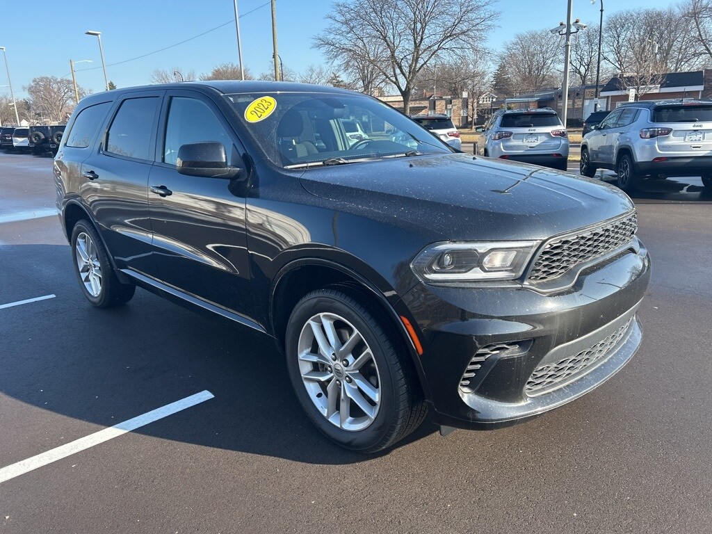 The all new Golling CDJR of Grosse Pointe is excited to offer this 2023 Dodge Durango GT in DB Black Crystal Clearcoat with Black Cloth. This Durango is very well equipped with Quick Order Package 2BD GT, 3.45 Rear Axle Ratio, 3rd row seats: split-bench, 4-Wheel Disc Brakes, 6 Speakers, ABS brakes, Air Conditioning, Alloy wheels, AM/FM radio: SiriusXM, Apple CarPlay, Apple CarPlay/Android Auto, Auto-dimming Rear-View mirror, Automatic temperature control, Brake assist, Bumpers: body-color, Cloth Bucket Seats w/Shift Insert, Compass, Delay-off headlights, Driver door bin, Driver vanity mirror, Dual front impact airbags, Dual front side impact airbags, Electronic Stability Control, Exterior Mirrors w/Heating Element, Four wheel independent suspension, Front anti-roll bar, Front Bucket Seats, Front Center Armrest w/Storage, Front dual zone A/C, Front License Plate Bracket, Front reading lights, Fully automatic headlights, Garage door transmitter, Gloss Black Exterior Mirrors, Google Android Auto, GPS Antenna Input, Heated door mirrors, Heated front seats, Heated steering wheel, Illuminated entry, Integrated Center Stack Radio, Integrated Voice Command w/Bluetooth, Knee airbag, Leather steering wheel, Low tire pressure warning, Occupant sensing airbag, Outside temperature display, Overhead airbag, Overhead console, Panic alarm, ParkView Rear Back-Up Camera, Passenger door bin, Passenger vanity mirror, Power door mirrors, Power driver seat, Power Liftgate, Power steering, Power windows, Radio data system, Radio: Uconnect 4 w/8.4" Display, Rear air conditioning, Rear anti-roll bar, Rear reading lights, Rear seat center armrest, Rear window defroster, Rear window wiper, Red Accent Stitching, Remote keyless entry, SiriusXM Radio Service, SiriusXM Satellite Radio, Speed control, Speed-sensing steering, Speed-Sensitive Wipers, Split folding rear seat, Spoiler, Sport steering wheel, Steering wheel mounted audio controls, Tachometer, Telescoping steering wheel, Tilt steering wheel, Traction control, Trip computer, USB Host Flip, Variably intermittent wipers, Voltmeter, and Wheels: 20" x 8.0" Fine Silver.