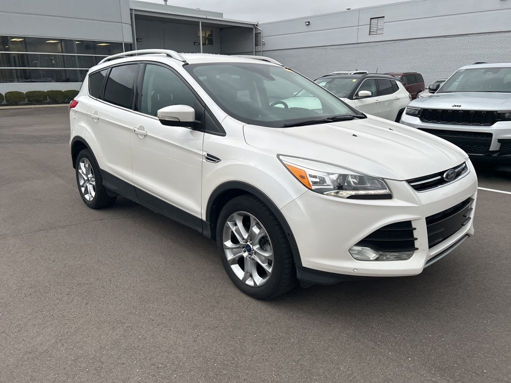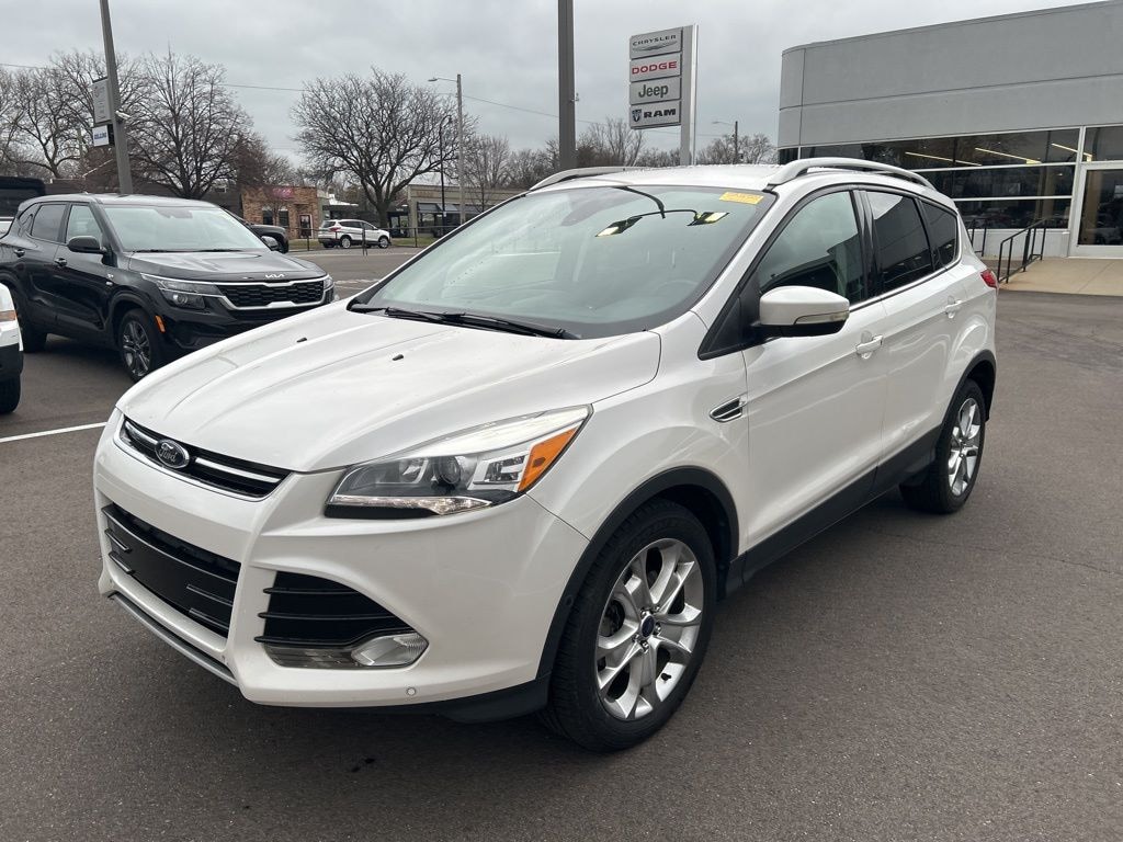 The all new Golling CDJR of Grosse Pointe is excited to offer this 2014 Ford Escape Titanium in White Platinum with Charcoal Black Leather. This Escape is very well equipped with Equipment Group 401A, Titanium Technology Package (Active Park Assist, Bi-Xenon High-Intensity Discharge Headlamps, BLIS w/Cross Traffic Alert, and Rain-Sensing Wipers), 10 Speakers, 3.21 Axle Ratio, 4-Wheel Disc Brakes, ABS brakes, Air Conditioning, Alloy wheels, AM/FM radio: SiriusXM, Auto-dimming Rear-View mirror, Automatic temperature control, Brake assist, Bumpers: body-color, CD player, Compass, Delay-off headlights, Driver door bin, Driver vanity mirror, Dual front impact airbags, Dual front side impact airbags, Electronic Stability Control, Exterior Parking Camera Rear, Four wheel independent suspension, Front & Rear All-Weather Floor Mats, Front anti-roll bar, Front Bucket Seats, Front Center Armrest, Front dual zone A/C, Front fog lights, Front reading lights, Fully automatic headlights, Garage door transmitter, Heated door mirrors, Heated front seats, Heated Leather-Trimmed Buckets w/60/40 Rear Seat, Illuminated entry, Knee airbag, Leather Shift Knob, Low tire pressure warning, Memory seat, Occupant sensing airbag, Outside temperature display, Overhead airbag, Overhead console, Panic alarm, Passenger door bin, Passenger vanity mirror, Power door mirrors, Power driver seat, Power Liftgate, Power steering, Power windows, Radio data system, Radio: AM/FM Single CD/MP3, Rear anti-roll bar, Rear Parking Sensors, Rear reading lights, Rear seat center armrest, Rear window defroster, Rear window wiper, Remote keyless entry, Roof rack: rails only, Security system, Speed control, Speed-sensing steering, Split folding rear seat, Steering wheel mounted audio controls, SYNC w/MyFord Touch & SYNC Services, Tachometer, Telescoping steering wheel, Tilt steering wheel, Traction control, Trip computer, Turn signal indicator mirrors, Variably intermittent wipers, and Wheels: 18" Sparkle Nickel Painted Aluminum.