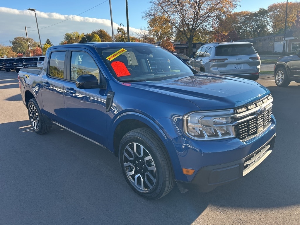 The all new Golling CDJR of Grosse Pointe is proud to offer this 2024 Ford Maverick Lariat in Atlas Blue Metallic with Desert Brown. This Maverick is very well equipped with Equipment Group 500A Standard, 2.91 Axle Ratio, 4-Wheel Disc Brakes, 8 Speakers, ABS brakes, ActiveX Trimmed Front Bucket Seats, Air Conditioning, Alloy wheels, AM/FM radio: SiriusXM, Auto High-beam Headlights, Automatic temperature control, Brake assist, Bumpers: body-color, Compass, Delay-off headlights, Driver door bin, Driver vanity mirror, Dual front impact airbags, Dual front side impact airbags, Electronic Stability Control, Emergency communication system: 911 Assist, Exterior Parking Camera Rear, Front & Rear Floor Liners w/o Carpet Mats, Front anti-roll bar, Front Bucket Seats, Front Center Armrest, Front dual zone A/C, Front reading lights, Front wheel independent suspension, Fully automatic headlights, Heated door mirrors, Heated front seats, Heated steering wheel, Illuminated entry, Knee airbag, Low tire pressure warning, Navigation System, Occupant sensing airbag, Outside temperature display, Overhead airbag, Overhead console, Panic alarm, Passenger door bin, Passenger vanity mirror, Power door mirrors, Power driver seat, Power Moonroof, Power steering, Power windows, Radio data system, Radio: B&O Sound System by Bang & Olufsen, Rear anti-roll bar, Rear Parking Sensors, Rear seat center armrest, Rear step bumper, Remote keyless entry, Security system, SiriusXM Radio, Speed control, Speed-sensing steering, Steering wheel mounted audio controls, SYNC 3 Communications & Entertainment System, Telescoping steering wheel, Tilt steering wheel, Traction control, Trip computer, and Wheels: 18" Machined-Face Bright Aluminum.