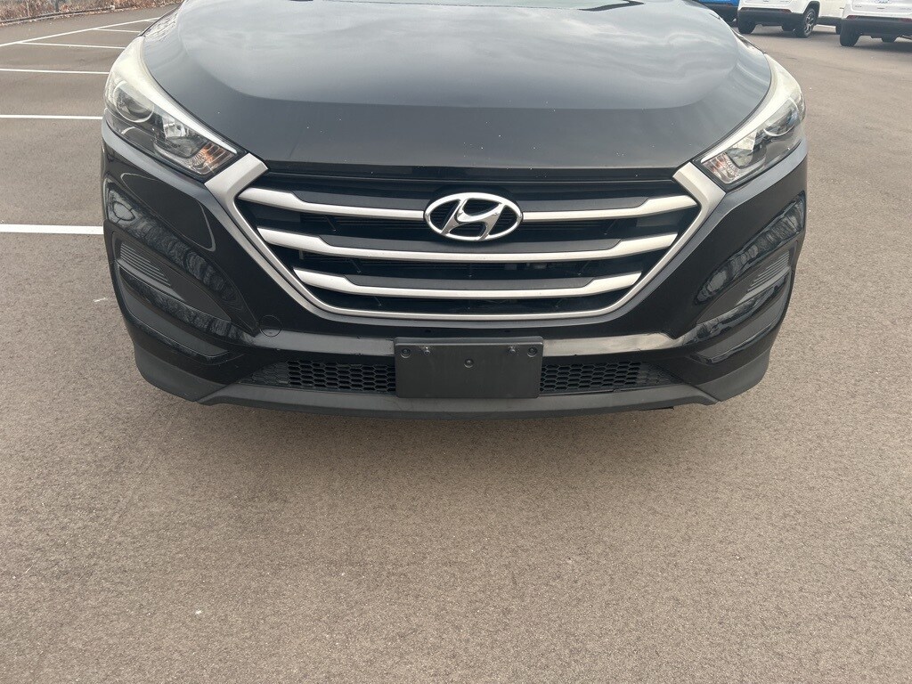 The all new Golling CDJR of Grosse Pointe is pleased to offer this 2018 Hyundai Tucson SE in Black Noir Pearl with Black Cloth. This Tucson is very well equipped with Cargo Package (Cargo Net, Cargo Tray, and First Aid Kit), Option Group 01, 17" x 7.0J Alloy Wheels, 4-Wheel Disc Brakes, 6 Speakers, ABS brakes, Air Conditioning, Alloy wheels, AM/FM radio, AM/FM/CD/MP3 Audio System, Axle Ratio: 3.51, Brake assist, Bumpers: body-color, Carpeted Floor Mats, CD player, Delay-off headlights, Driver door bin, Driver vanity mirror, Dual front impact airbags, Dual front side impact airbags, Electronic Stability Control, Exterior Parking Camera Rear, Four wheel independent suspension, Front anti-roll bar, Front Bucket Seats, Front Center Armrest, Front reading lights, Fully automatic headlights, Heated door mirrors, Illuminated entry, Low tire pressure warning, Occupant sensing airbag, Outside temperature display, Overhead airbag, Overhead console, Panic alarm, Passenger door bin, Passenger vanity mirror, Power door mirrors, Power steering, Power windows, Rear anti-roll bar, Rear seat center armrest, Rear window defroster, Rear window wiper, Remote keyless entry, Security system, Speed control, Speed-sensing steering, Split folding rear seat, Spoiler, Steering wheel mounted audio controls, Tachometer, Telescoping steering wheel, Tilt steering wheel, Traction control, Trip computer, Variably intermittent wipers, and YES Essentials Cloth Seat Trim.