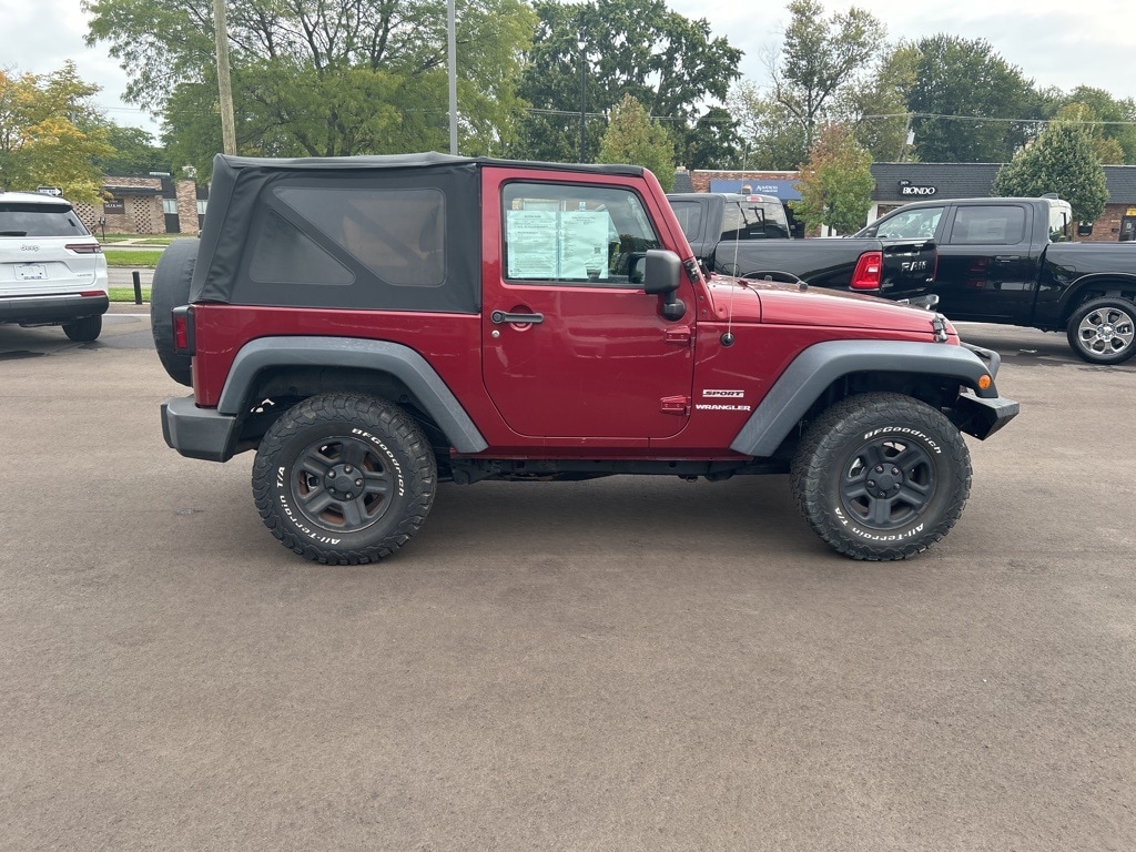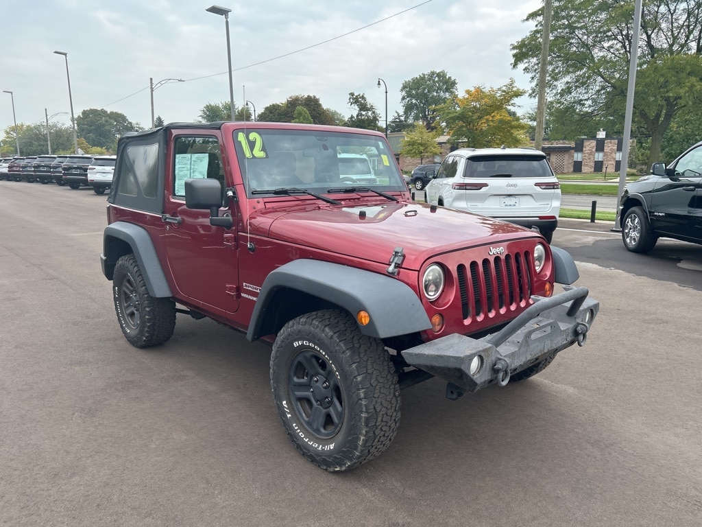 The all new Golling CDJR of Grosse Pointe is very proud to offer this 2012 Jeep Wrangler Sport in Deep Cherry Red Crystal Pearlcoat with Black Interior Cloth. This Wrangler is very well equipped with Quick Order Package 24B, 16" x 7.0" Luxury Styled Steel Wheels, 3.21 Rear Axle Ratio, 4-Wheel Disc Brakes, 6 Speakers, ABS brakes, Air Conditioning, AM/FM radio, Brake assist, CD player, Cloth Bucket Seats, Compass, Driver door bin, Driver vanity mirror, Dual front impact airbags, Electronic Stability Control, Front anti-roll bar, Front Bucket Seats, Front Center Armrest w/Storage, Front fog lights, Integrated roll-over protection, Low tire pressure warning, Normal Duty Suspension, Occupant sensing airbag, Outside temperature display, Passenger door bin, Passenger vanity mirror, Power steering, Radio: Uconnect 130 CD/MP3, Rear anti-roll bar, Speed control, Steering wheel mounted audio controls, Tachometer, Tilt steering wheel, Traction control, Trip computer, and Variably intermittent wipers.