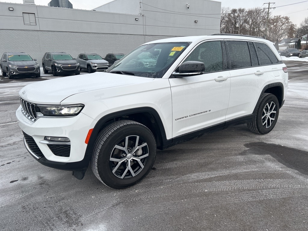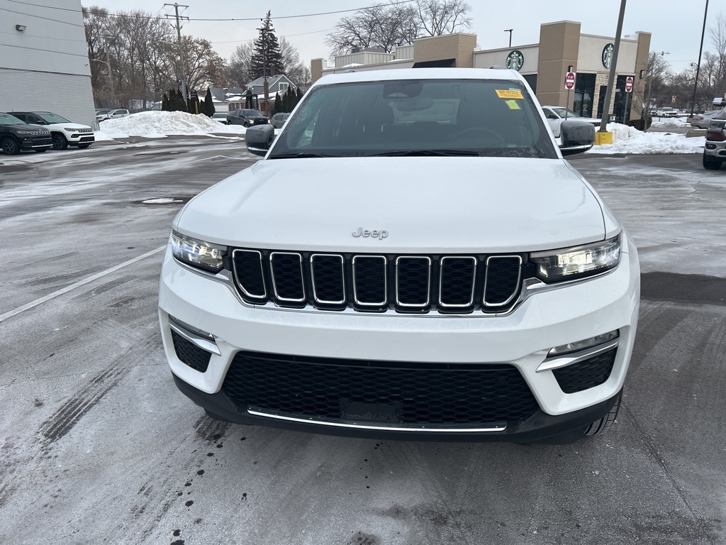 The all new Golling CDJR of Grosse Pointe is pumped up to offer this 2024 Jeep Grand Cherokee Limited in Bright White Clearcoat with Global Black Artificial Leather. This Grand Cherokee is very well equipped with Quick Order Package 22E, 3.45 Rear Axle Ratio, 4-Wheel Disc Brakes, 6 Speakers, ABS brakes, Active Noise Control System, Air Conditioning, Alloy wheels, AM/FM radio: SiriusXM with 360L, Anti-whiplash front head restraints, Audio memory, Auto High-beam Headlights, Automatic temperature control, Brake assist, Bumpers: body-color, Capri Leatherette Seats, Compass, Delay-off headlights, Driver door bin, Driver vanity mirror, Dual front impact airbags, Dual front side impact airbags, Electronic Stability Control, Emergency communication system, Four wheel independent suspension, Front anti-roll bar, Front Bucket Seats, Front Center Armrest w/Storage, Front dual zone A/C, Front fog lights, Front reading lights, Fully automatic headlights, Garage door transmitter, Heated door mirrors, Heated front seats, Heated rear seats, Heated steering wheel, Illuminated entry, Knee airbag, Low tire pressure warning, Memory seat, Navigation System, Normal Duty Suspension, Occupant sensing airbag, Outside temperature display, Overhead airbag, Overhead console, Panic alarm, ParkView Rear Back-Up Camera, Passenger door bin, Passenger vanity mirror, Power door mirrors, Power driver seat, Power Liftgate, Power passenger seat, Power steering, Power windows, Radio data system, Radio: Uconnect 5 Nav w/10.1" Display, Rear anti-roll bar, Rear reading lights, Rear window defroster, Rear window wiper, Remote keyless entry, Security system, Speed control, Speed-Sensitive Wipers, Split folding rear seat, Spoiler, Steering wheel mounted audio controls, Tachometer, Telescoping steering wheel, Tilt steering wheel, Traction control, Trip computer, Turn signal indicator mirrors, Variably intermittent wipers, Voltmeter, and Wheels: 18" x 8" Polished/Painted Aluminum.