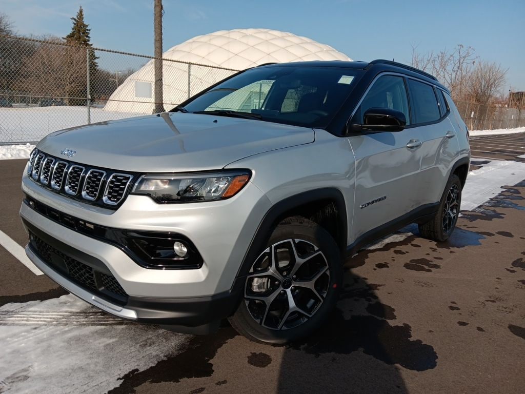 The all new Golling CDJR of Grosse Pointe is pumped up to offer this 2026 Jeep Compass Limited in Silver Zynith Metallic Clearcoat with Black Artificial Leather. This Compass is very well equipped with Quick Order Package 29G Limited, 10.1" Touchscreen Display, 3.73 Final Drive Ratio, 4-Wheel Disc Brakes, 4G LTE Wi-Fi Hot Spot, 6 Speakers, ABS brakes, Air Conditioning, Alloy wheels, AM/FM radio: SiriusXM, Auto High-beam Headlights, Auto-dimming Rear-View mirror, Automatic temperature control, Brake assist, Bumpers: body-color, Compass, Delay-off headlights, Driver door bin, Driver vanity mirror, Dual front impact airbags, Dual front side impact airbags, Electronic Stability Control, Emergency communication system: SiriusXM Guardian, Four wheel independent suspension, Front anti-roll bar, Front Bucket Seats, Front Center Armrest w/Storage, Front dual zone A/C, Front fog lights, Front reading lights, Fully automatic headlights, Global Telematics Box Module, Heated door mirrors, Heated front seats, Heated steering wheel, Illuminated entry, Knee airbag, Leather Shift Knob, Leather steering wheel, Leatherette Seats, Low tire pressure warning, Occupant sensing airbag, Outside temperature display, Overhead airbag, Overhead console, Panic alarm, ParkView Rear Back-Up Camera, Passenger door bin, Passenger vanity mirror, Power door mirrors, Power driver seat, Power Liftgate, Power steering, Power windows, Premium audio system: UConnect 5, Radio: Uconnect 5 with 10.1" Display, Rain sensing wipers, Rear anti-roll bar, Rear seat center armrest, Rear window defroster, Rear window wiper, Remote keyless entry, Security system, SiriusXM Guardian - Included Trail (B), SiriusXM Radio Service, Speed control, Split folding rear seat, Spoiler, Steering wheel mounted audio controls, Tachometer, Telescoping steering wheel, Tilt steering wheel, Traction control, Trip computer, Turn signal indicator mirrors, Variably intermittent wipers, and Wheels: 18" x 7" Painted Diamond Cut Aluminum.
