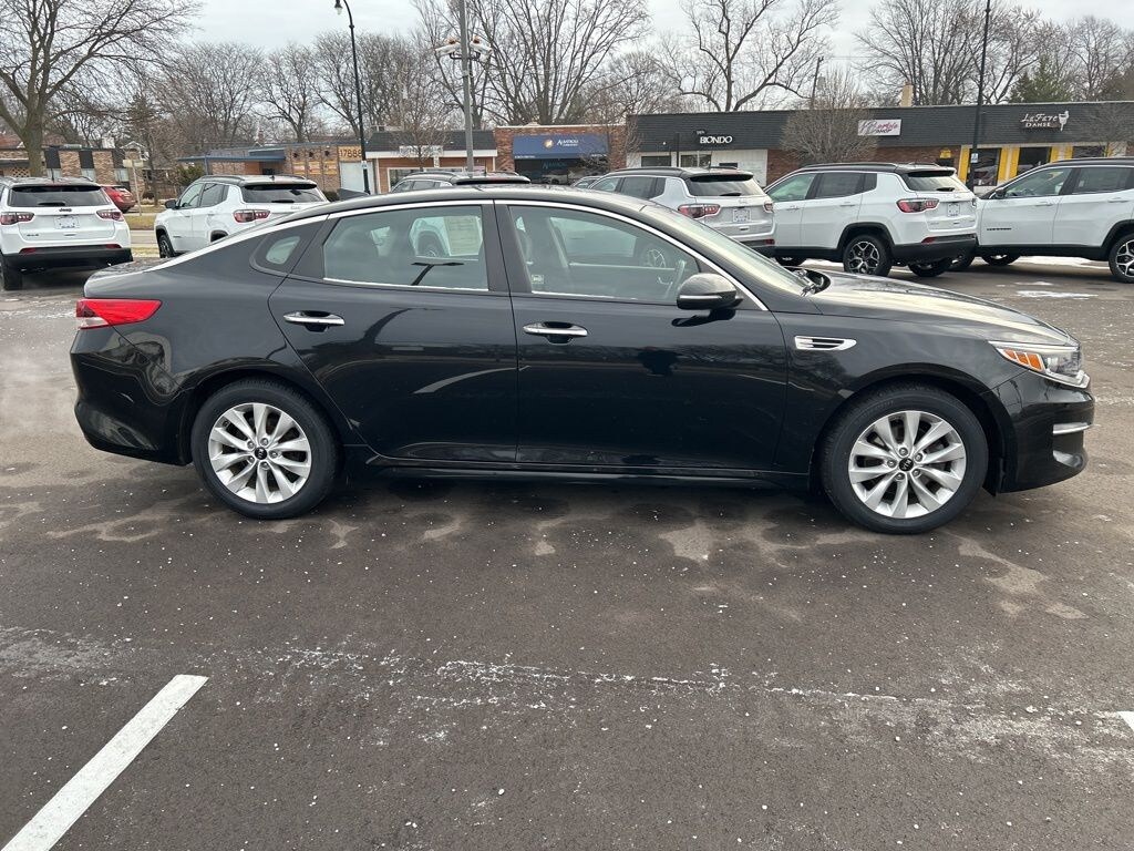 The all new Golling CDJR of Grosse Pointe is proud to offer this 2018 Kia Optima LX in Ebony Black with Black Cloth. This Optima is very well equipped with 17" Alloy Wheels Package (17" Alloy Wheels), Convenience Package (10-Way Power Adjustable Driver's Seat, Acoustic Laminated Front Door Windows, and Power Windows w/Front Auto Up/Down), 4-Wheel Disc Brakes, 6 Speakers, 6.5J x 16" Silver Alloy Wheels, ABS brakes, Air Conditioning, Alloy wheels, AM/FM radio: SiriusXM, Anti-whiplash front head restraints, Apple CarPlay & Android Auto, Brake assist, Bumpers: body-color, Carpeted Floor Mats, Cloth Seat Trim, Delay-off headlights, Driver door bin, Driver vanity mirror, Dual front impact airbags, Dual front side impact airbags, Electronic Stability Control, Emergency communication system, Exterior Parking Camera Rear, Four wheel independent suspension, Front anti-roll bar, Front Bucket Seats, Front Center Armrest, Front reading lights, Fully automatic headlights, Heated door mirrors, Illuminated entry, Knee airbag, Low tire pressure warning, Occupant sensing airbag, Outside temperature display, Overhead airbag, Overhead console, Panic alarm, Passenger door bin, Passenger vanity mirror, Power door mirrors, Power steering, Power windows, Radio data system, Radio: AM/FM/MP3/SiriusXM Audio System, Rear anti-roll bar, Rear Parking Sensors, Rear seat center armrest, Rear window defroster, Remote keyless entry, Security system, Speed control, Speed-sensing steering, Split folding rear seat, Steering wheel mounted audio controls, Tachometer, Telescoping steering wheel, Tilt steering wheel, Traction control, Trip computer, Turn signal indicator mirrors, and Variably intermittent wipers.