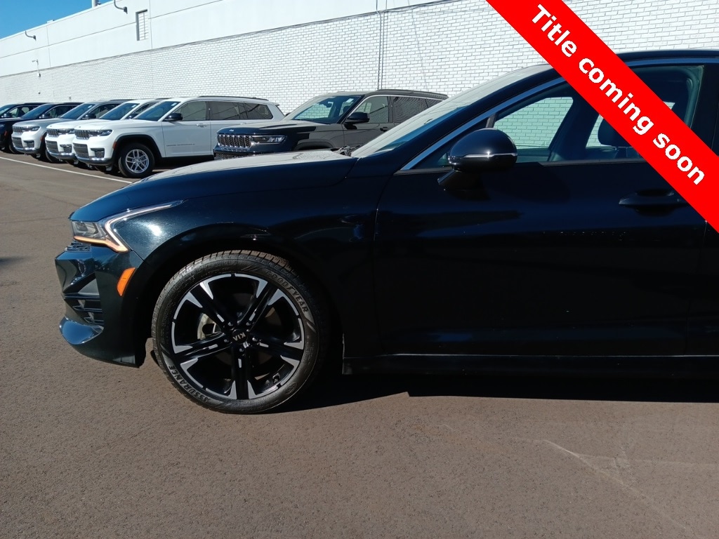 The all new Golling CDJR of Grosse Pointe is excited to offer this 2021 Kia K5 GT-Line in Ebony Black with Black Artificial Leather. This K5 is very well equipped with 4-Wheel Disc Brakes, 6 Speakers, ABS brakes, Air Conditioning, Alloy wheels, AM/FM radio: SiriusXM, Apple CarPlay & Android Auto, Auto High-beam Headlights, Automatic temperature control, Brake assist, Bumpers: body-color, Cargo Mat, Carpeted Floor Mats, Cloth/Leatherette Seat Trim, Delay-off headlights, Driver door bin, Driver vanity mirror, Dual front impact airbags, Dual front side impact airbags, Electronic Stability Control, Four wheel independent suspension, Front anti-roll bar, Front Bucket Seats, Front Center Armrest, Front dual zone A/C, Front fog lights, Front reading lights, Fully automatic headlights, Heated door mirrors, Heated Front Bucket Seats, Heated front seats, Heated steering wheel, Illuminated Door Sill Plates, Illuminated entry, Knee airbag, Low tire pressure warning, Occupant sensing airbag, Outside temperature display, Overhead airbag, Overhead console, Panic alarm, Passenger door bin, Passenger vanity mirror, Power door mirrors, Power driver seat, Power moonroof, Power steering, Power windows, Radio data system, Radio: AM/FM/MP3/SiriusXM Audio System, Rear anti-roll bar, Rear seat center armrest, Rear side impact airbag, Rear window defroster, Remote keyless entry, Security system, Speed control, Speed-sensing steering, Split folding rear seat, Spoiler, Sport steering wheel, Steering wheel mounted audio controls, Tachometer, Telescoping steering wheel, Tilt steering wheel, Traction control, Trip computer, Turn signal indicator mirrors, Variably intermittent wipers, and Wheels: 7.5J x 18" Graphite Machined Finish Alloy.